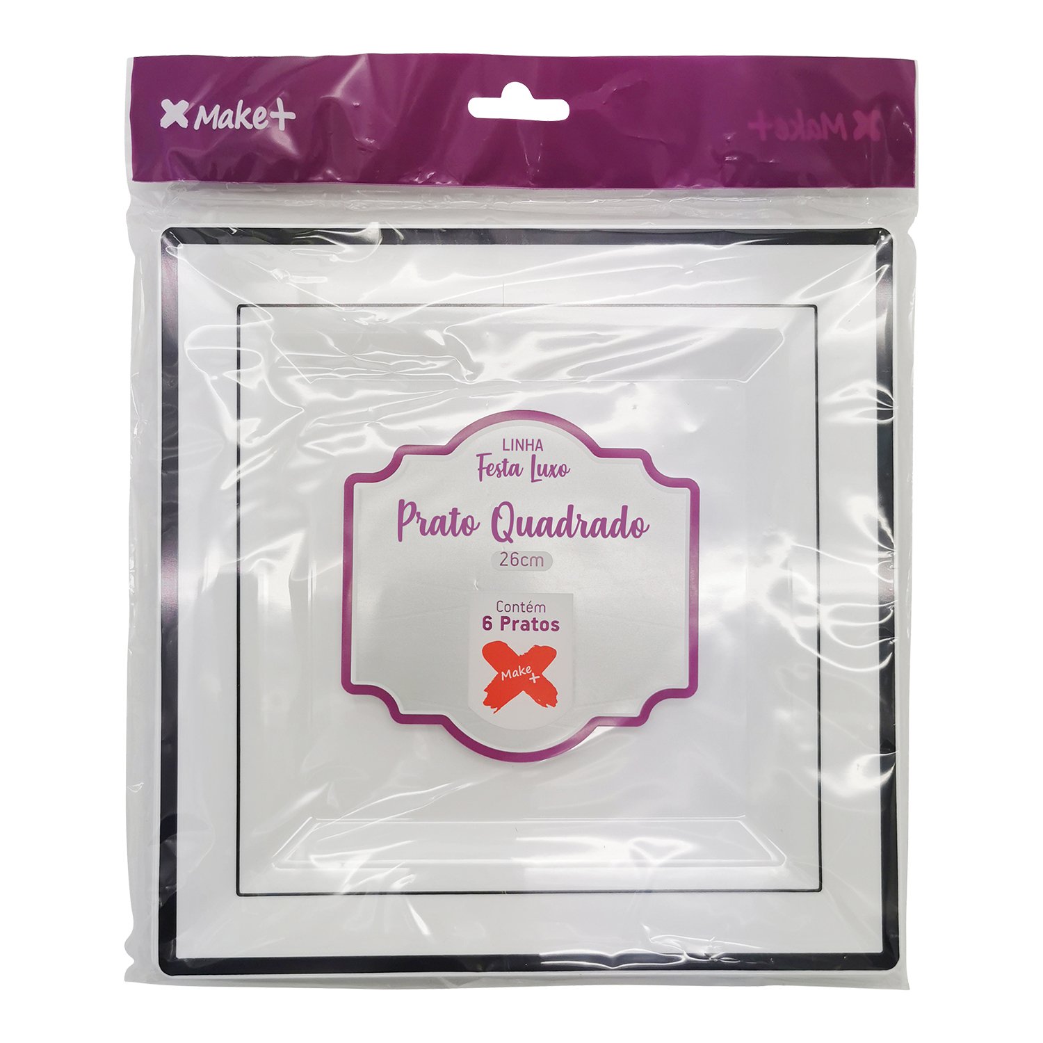 ACESSORIO FESTA PRAT. Quadrado 26 cm - Festa Luxo Preto - Pcte c/ 6 Und quantidade