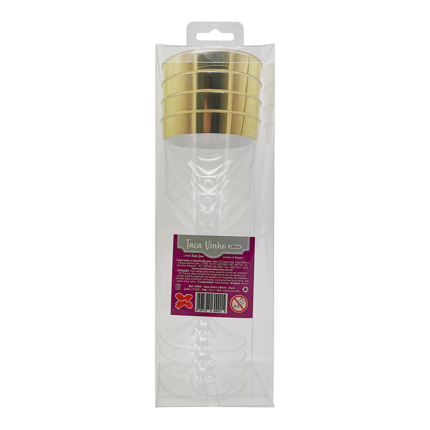 / ACESSORIO FESTA TAC. DE VINHO 280 ML – Ouro – Caixa c/ 4 Und