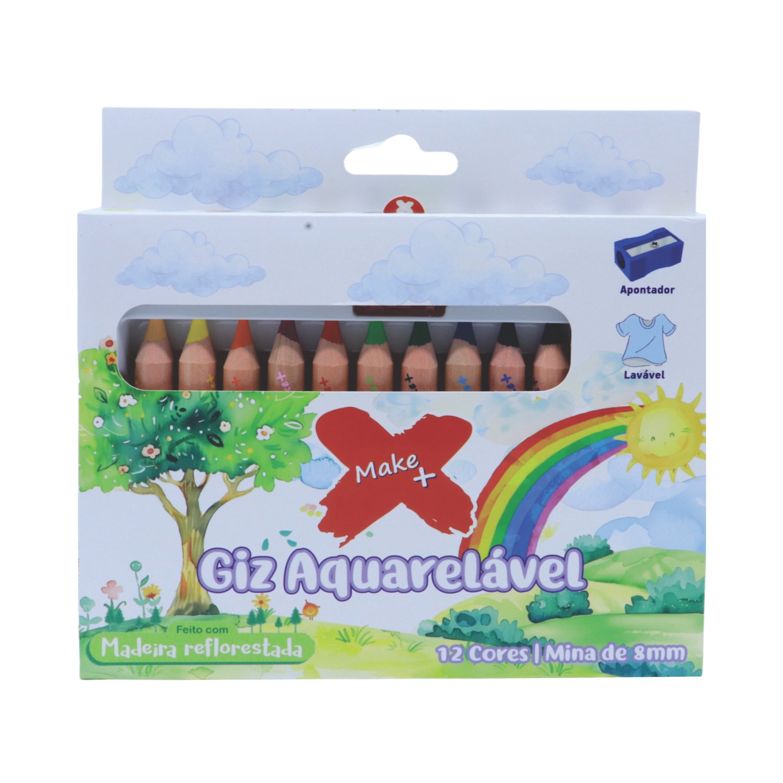 GIZ AQUARELÁVEL 12 CORES REDONDO 13X120MM MINA 8MM (MADEIRA)