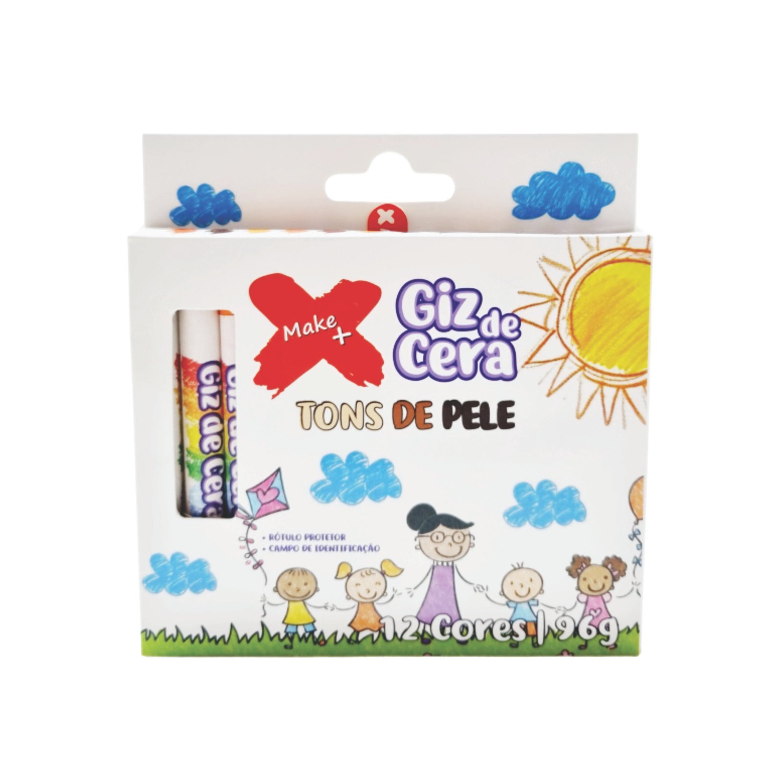 GIZ DE CERA C/ CAPA 12 CORES TONS DE PELE REDONDO 10X100MM 96GR