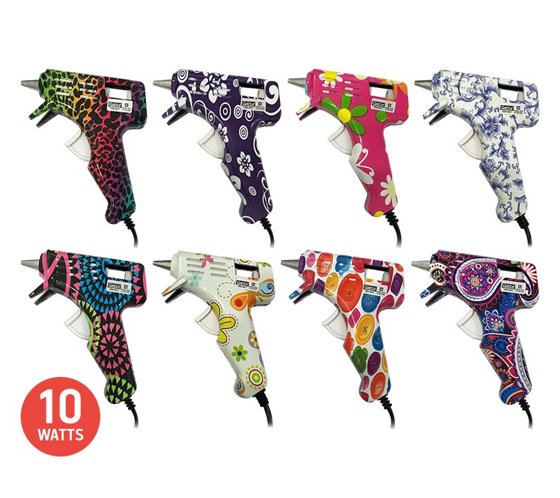 Pistola p/ cola quente Pequena 10W – Blister – Bivolt – Estampado Fantasia (mesclado 8 estampas)